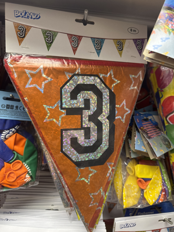 Vlaggenlijn 3 jaar 8 meter allebei de kanten bedruktVlaggenlijn 3 jaar 8 meter allebei de kanten bedrukt